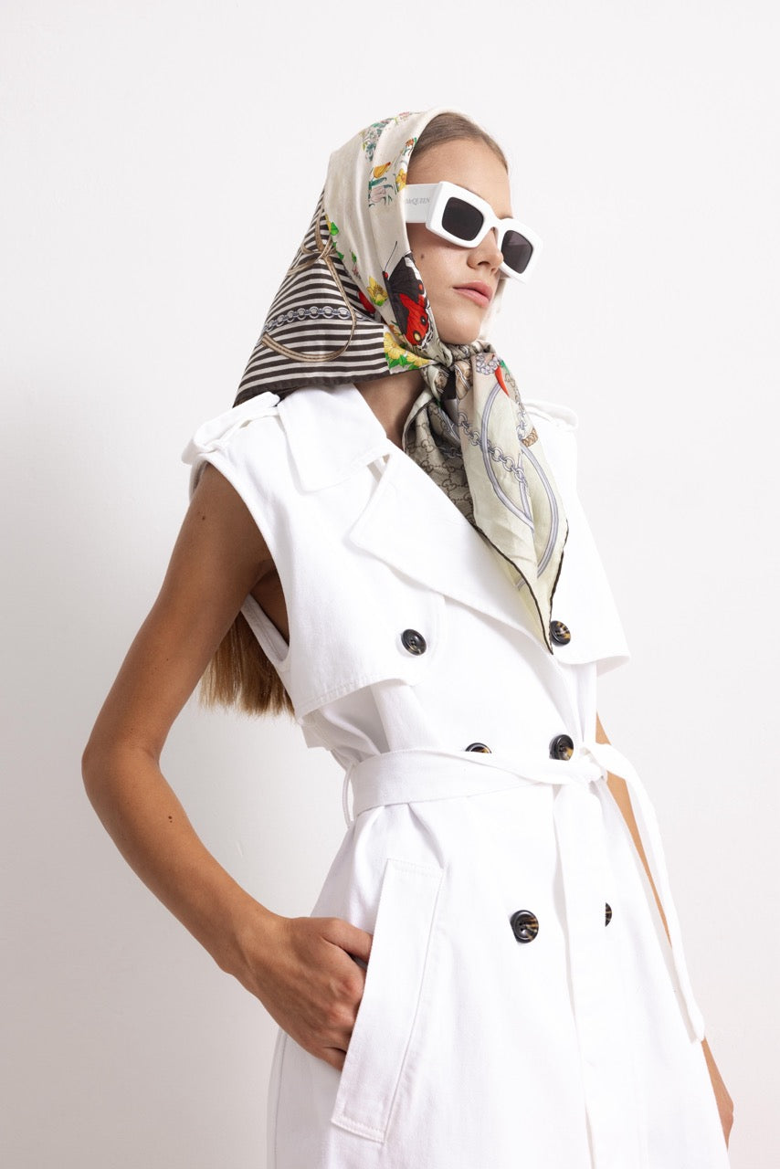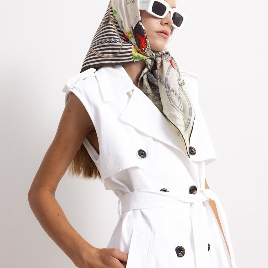 Ci siamo concentrate sulla qualità e la durata dei tessuti, ogni pezzo della collezione ha un attento artigianato interamente Made in Italy. Dai pantaloni in jeans al trench in cotone e per finire un abito in jeans total white, per ricordarci la semplicità e la raffinatezza di una donna, la collezione si distingue per la cura dei dettagli e la capacità di fondere tradizione e innovazione.