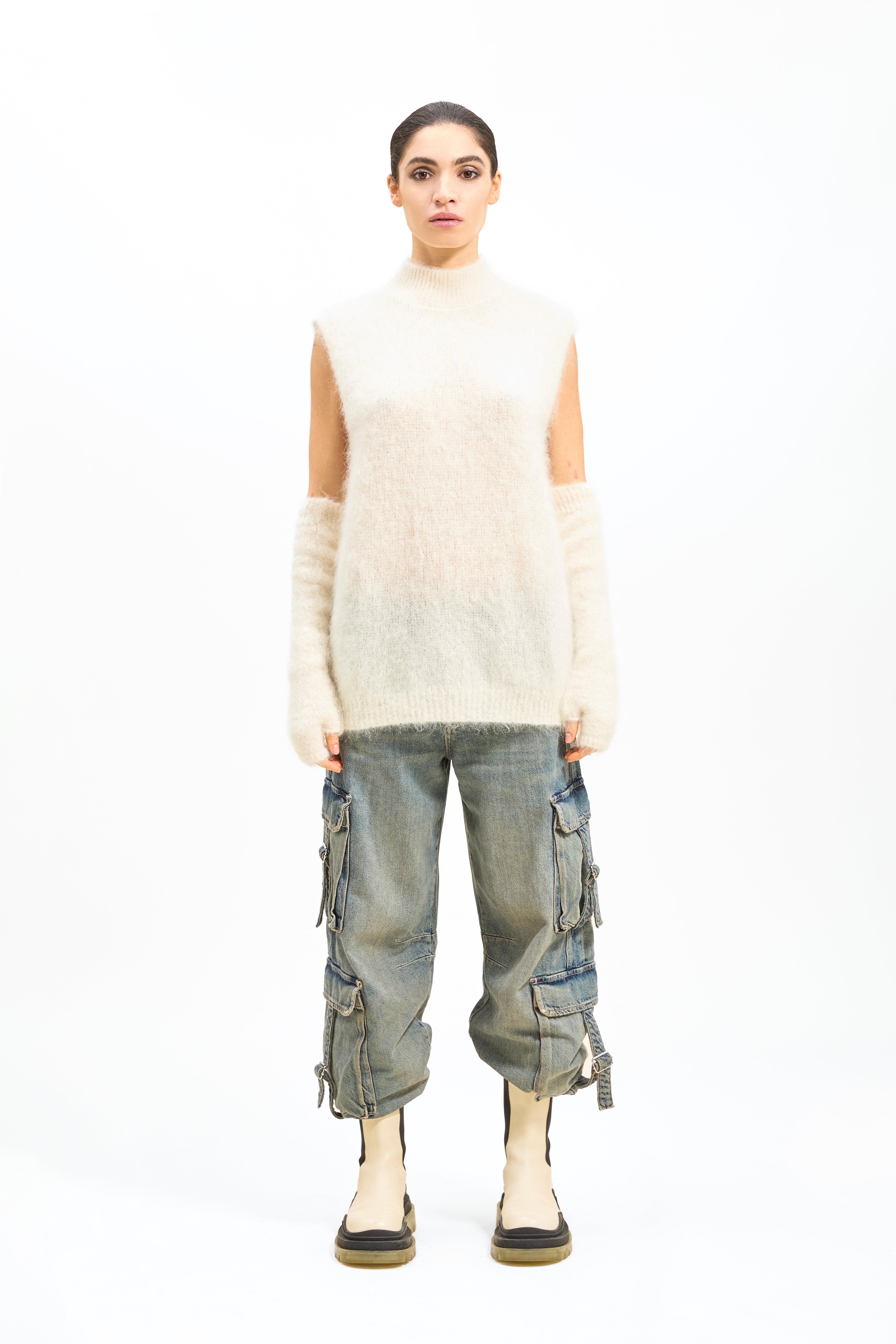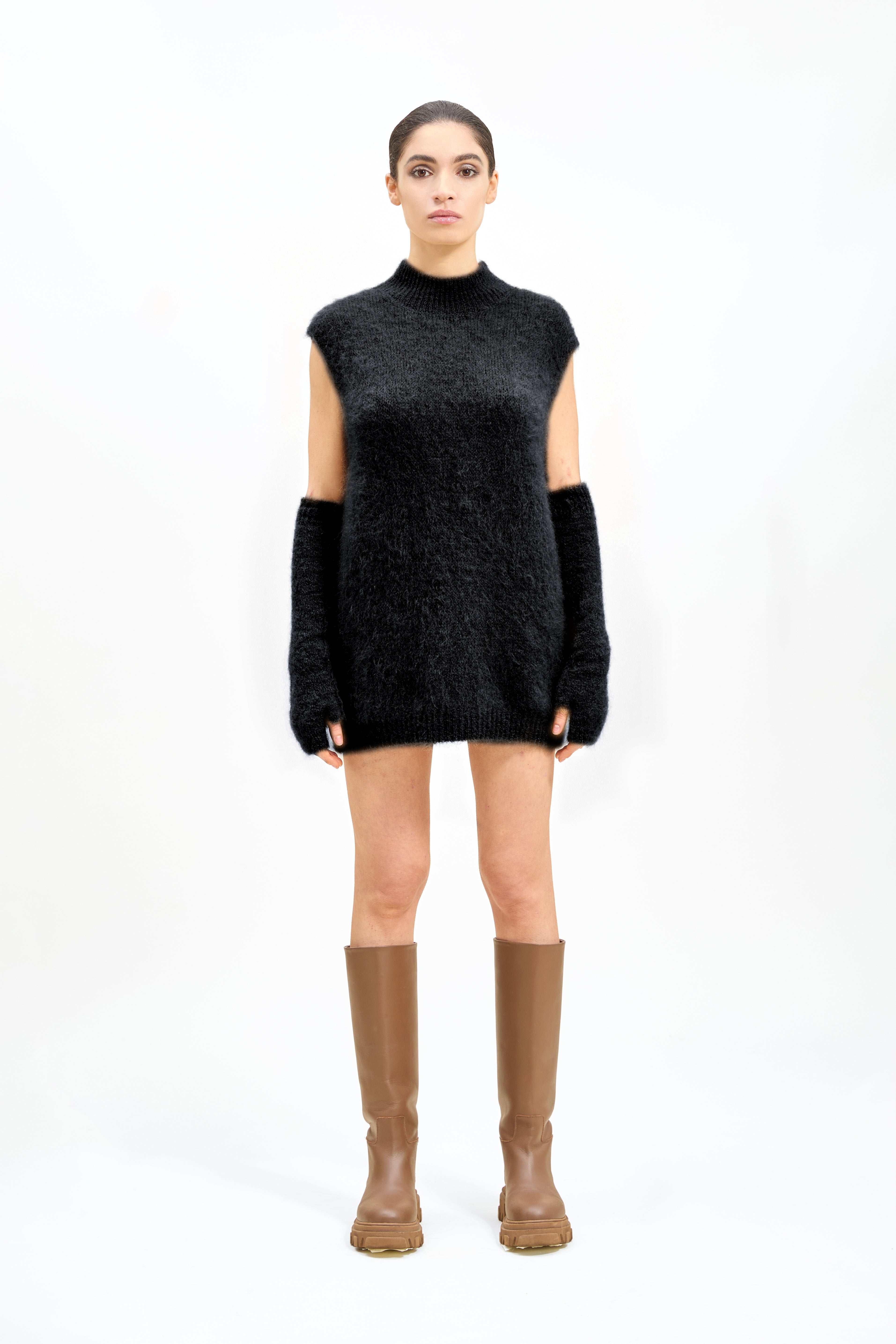 Gilet in Baby Mohair collo alto.
