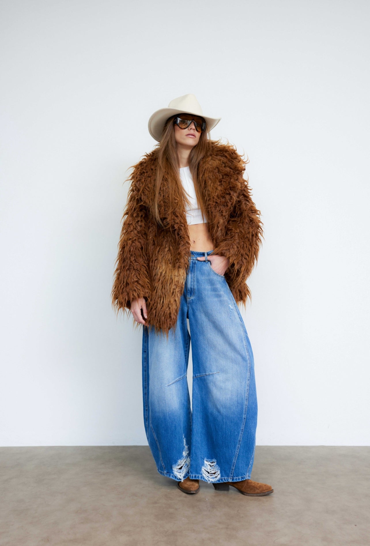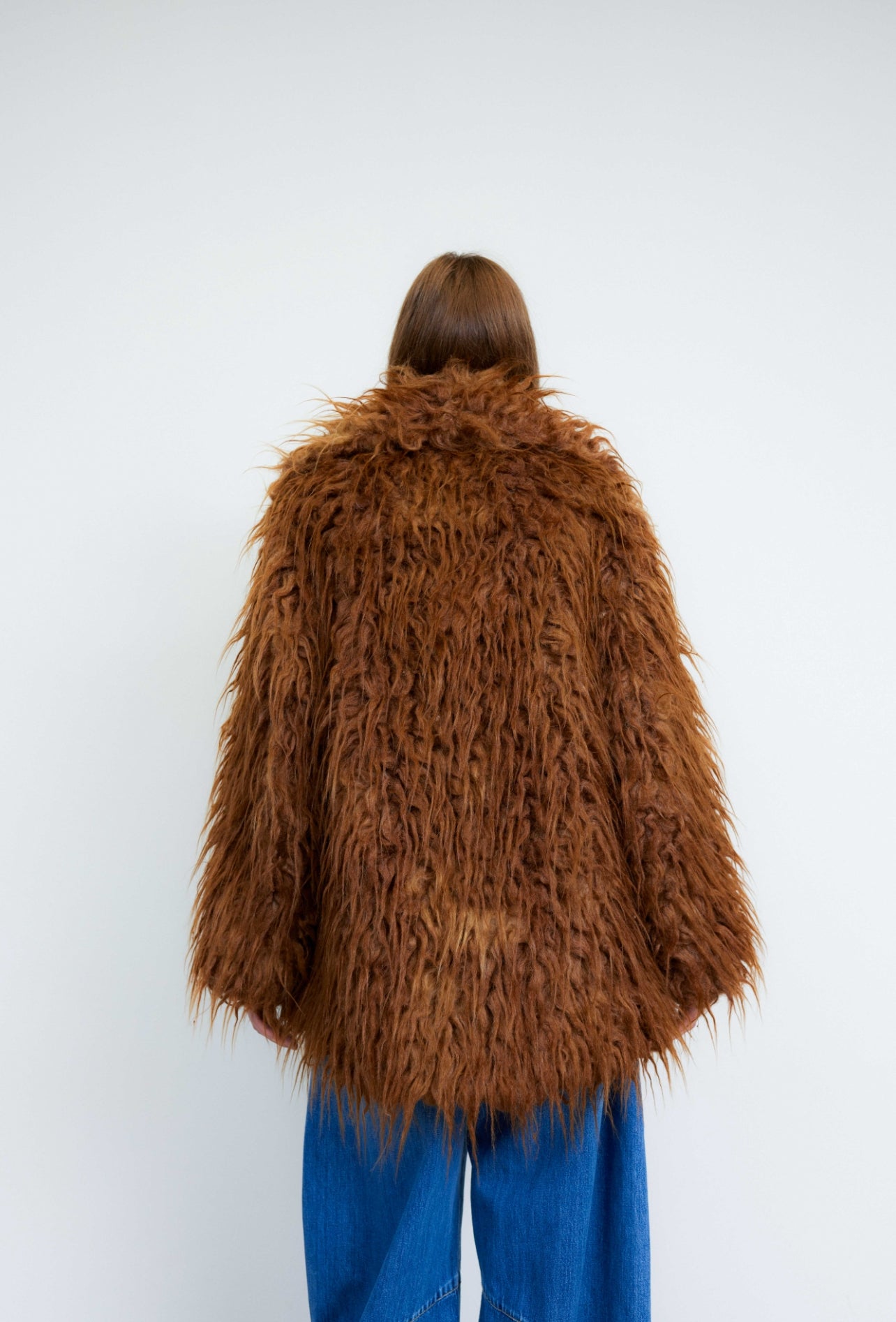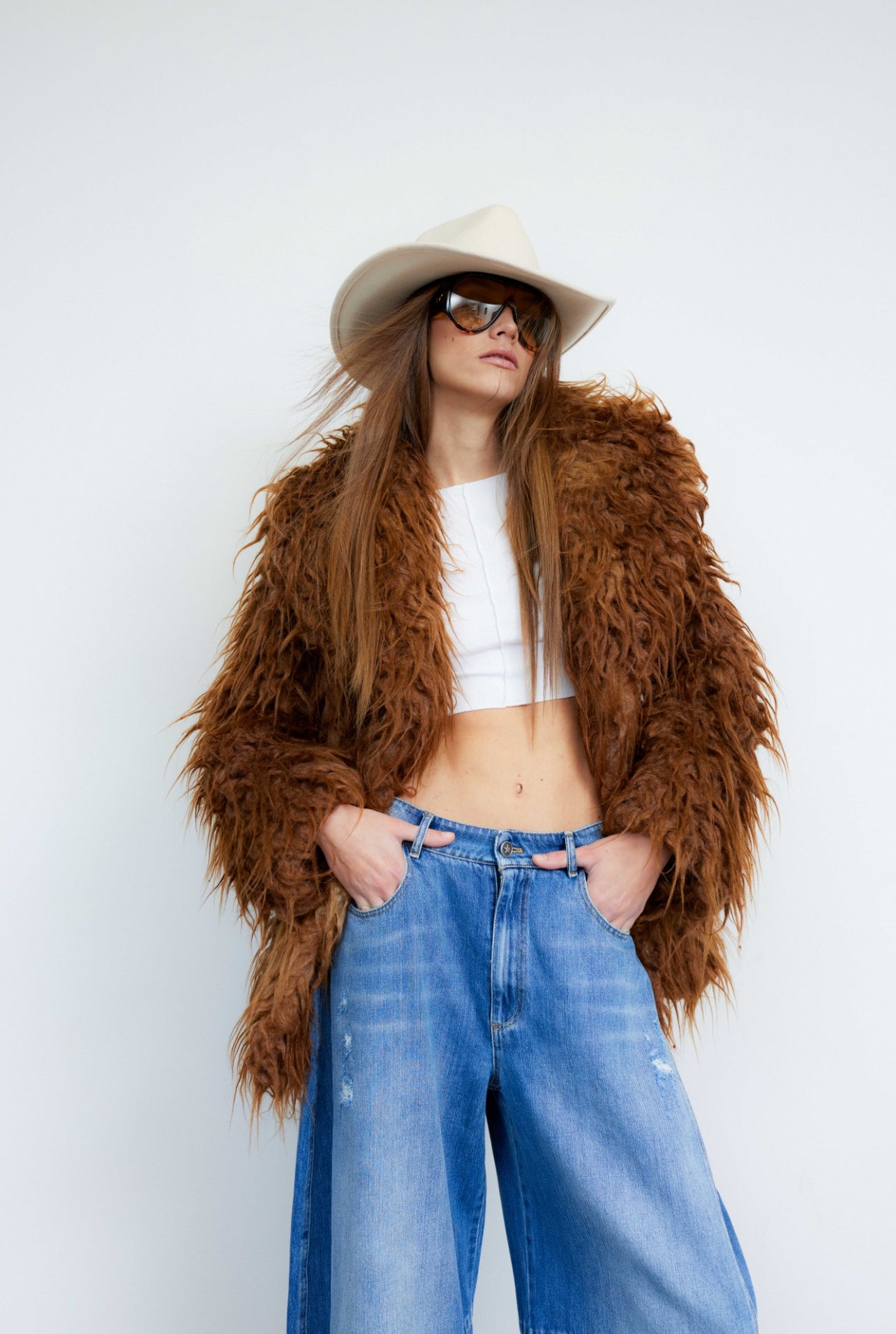 Giacca Canyon in tessuto effetto pelliccia sui toni caldi, dal design avvolgente e dal carattere deciso. Il collo sciallato dona morbidezza e movimento alla linea, mentre la struttura ampia valorizza un’estetica contemporanea e ricercata. Le tasche a filo si integrano con discrezione nel volume della giacca, offrendo funzionalità senza interrompere l’armonia del modello. La fodera liscia in 100% viscosa beige garantisce comfort e una piacevole sensazione al tatto. Perfetta per un outerwear sofisticato, dal fascino boho-chic.