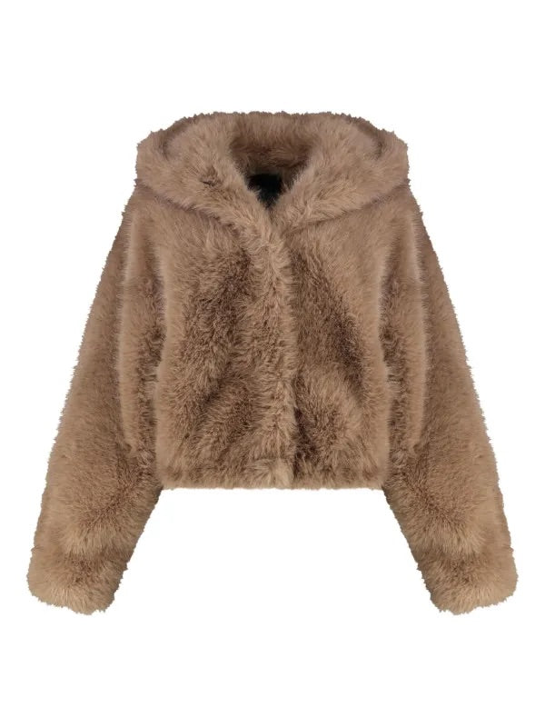 Combining the softness of faux fur with the bold character of a modern cut, this short jacket strikes the perfect balance between comfort and style. Crafted from a luxurious white mink-effect faux fur, it stands out for its silky texture and elegant look, ideal for those seeking a refined yet contemporary look.