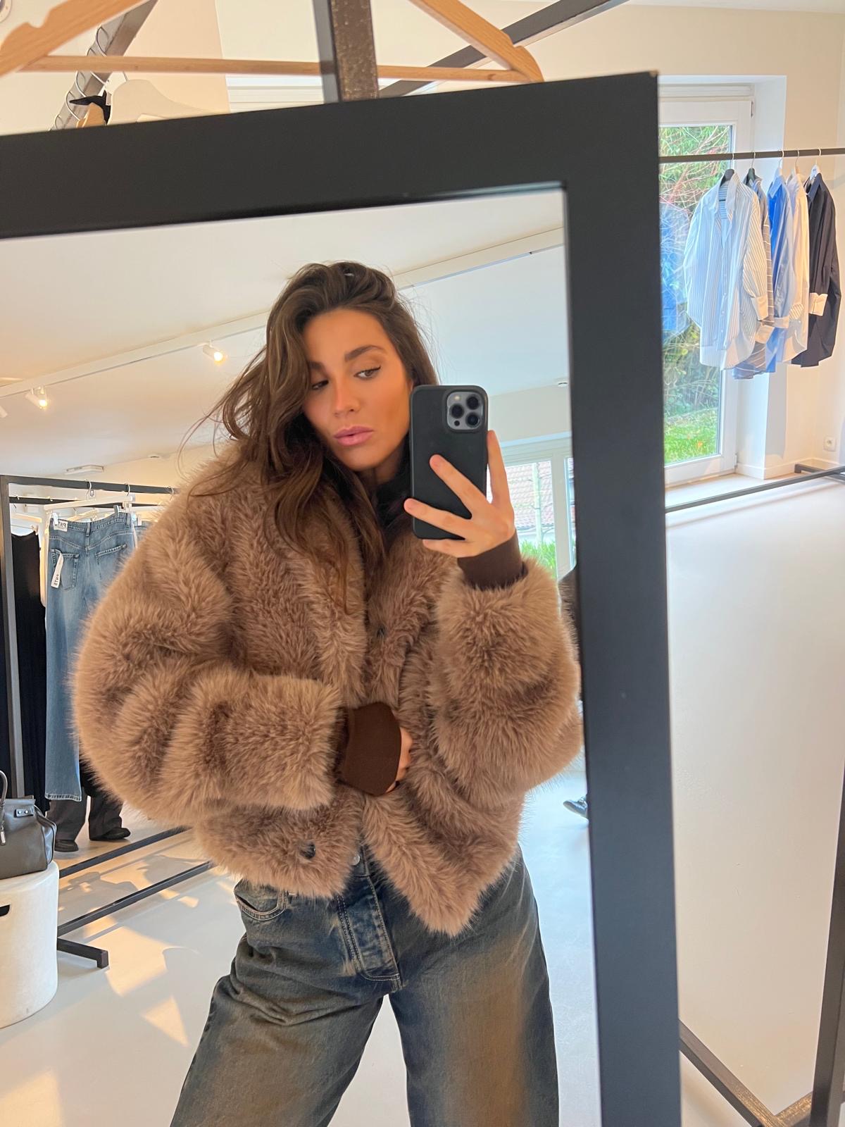 Unisce la morbidezza dell'eco-pelliccia al carattere deciso di un taglio moderno: questa giacca corta è il perfetto equilibrio tra comfort e stile. Realizzata in una pregiata eco-pelliccia bianca effetto visone, si distingue per la texture setosa e l'aspetto elegante, ideale per chi desidera un look raffinato ma contemporaneo.