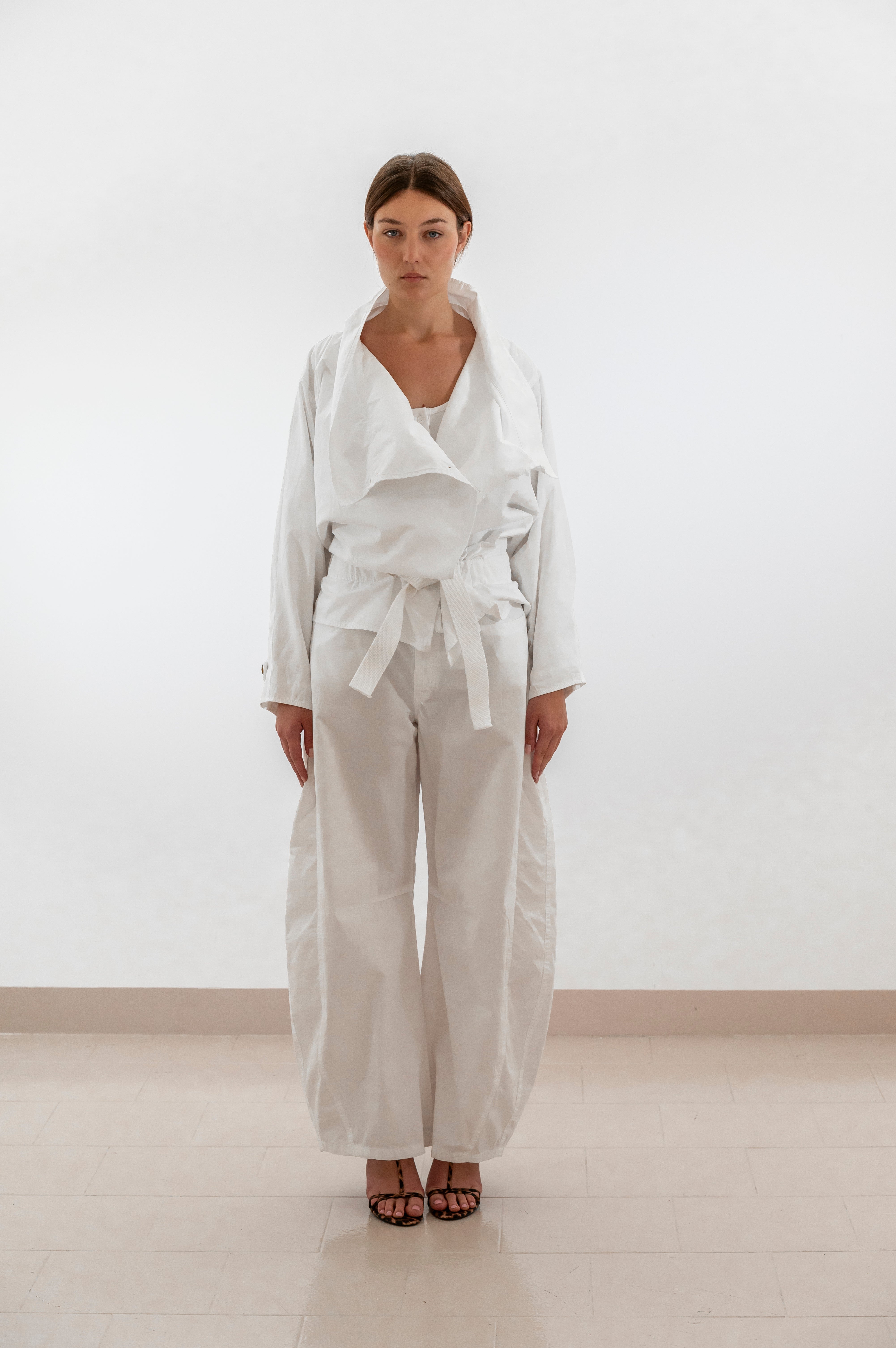 Ci siamo concentrate sulla qualità e la durata dei tessuti, ogni pezzo della collezione ha un attento artigianato interamente Made in Italy. Dai pantaloni in jeans al trench in cotone e per finire un abito in jeans total white, per ricordarci la semplicità e la raffinatezza di una donna, la collezione si distingue per la cura dei dettagli e la capacità di fondere tradizione e innovazione.