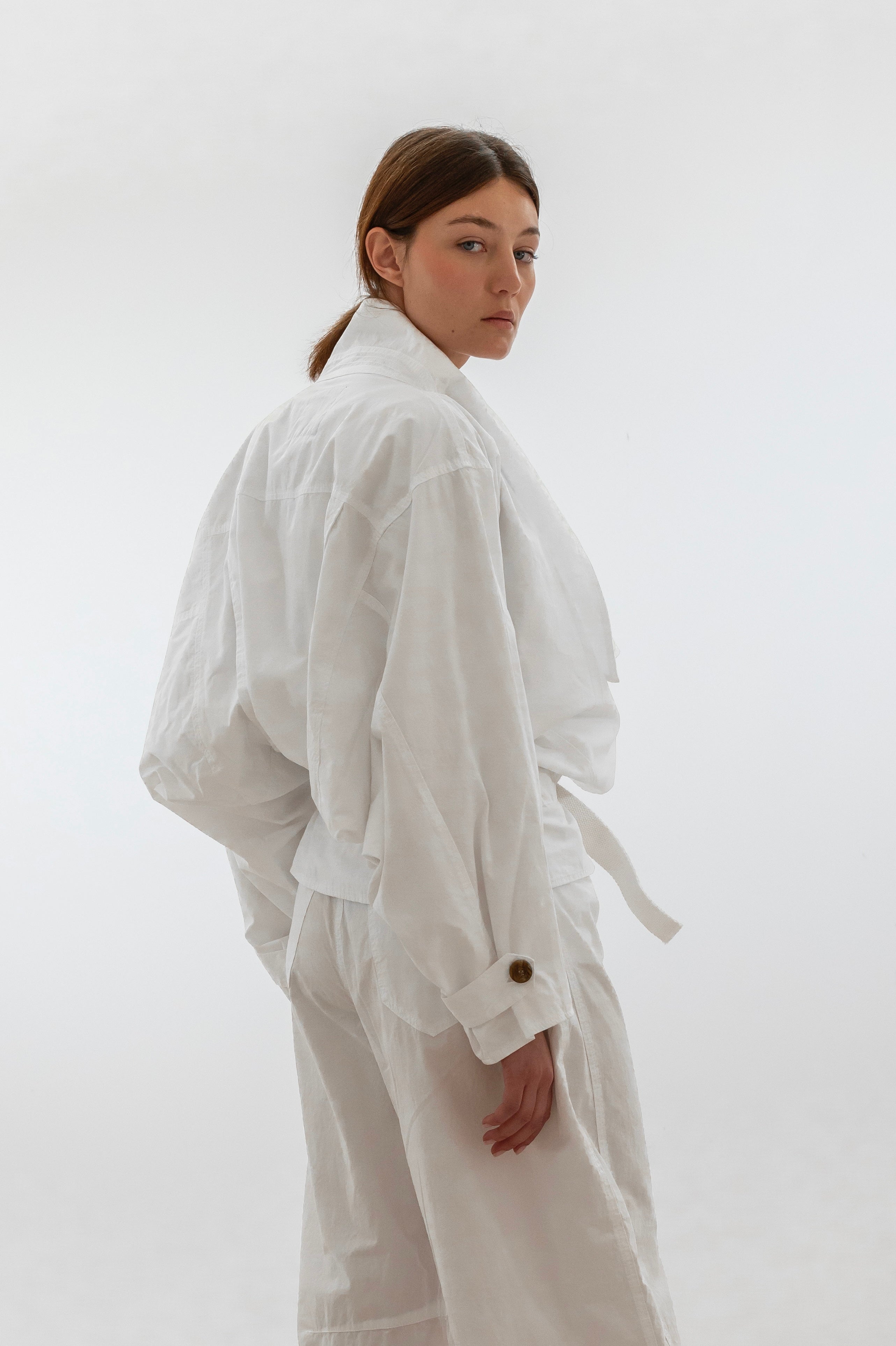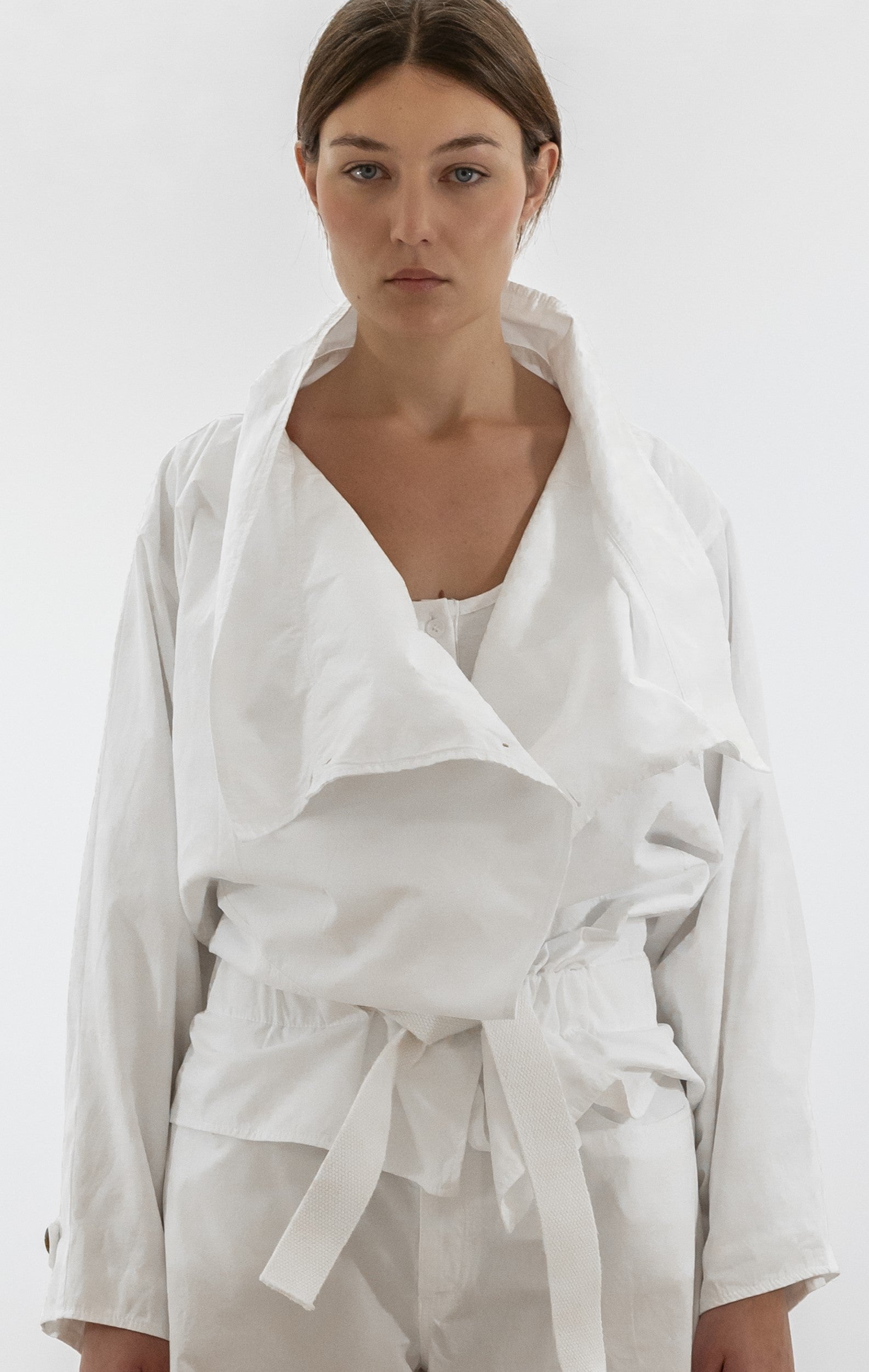La nostra giacca Japan Style si può portare in due modi diversi ruotandola si va a creare un altro modello e con un altro collo e vi permetterà con la coulisse di poterlo modellare come più preferite.