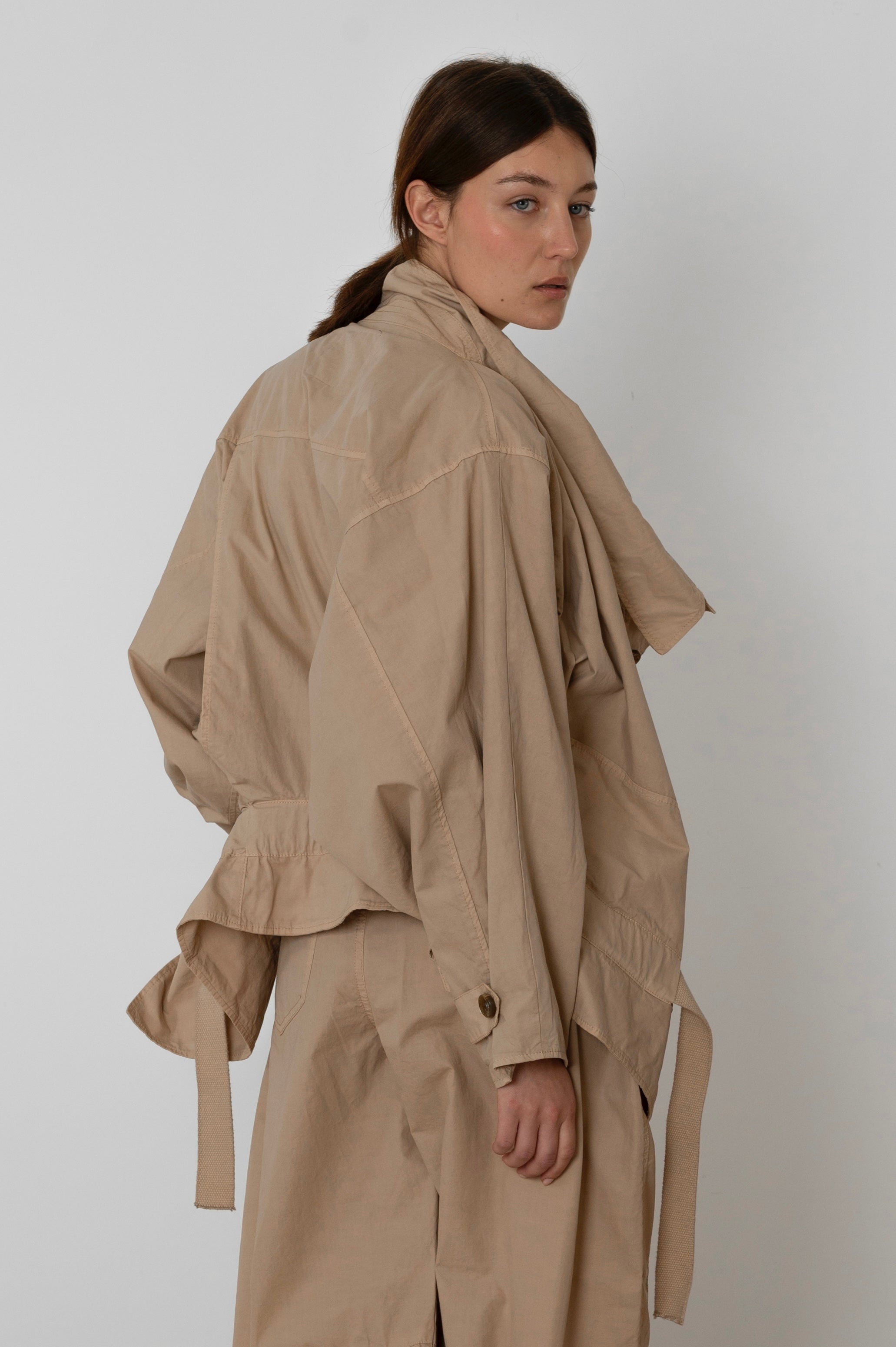 Design: giubbotto in cotone oversize foderato. Caratterizzato da un ampio colletto, bottini frontali e una coulisse in vita. Due tasche laterali.